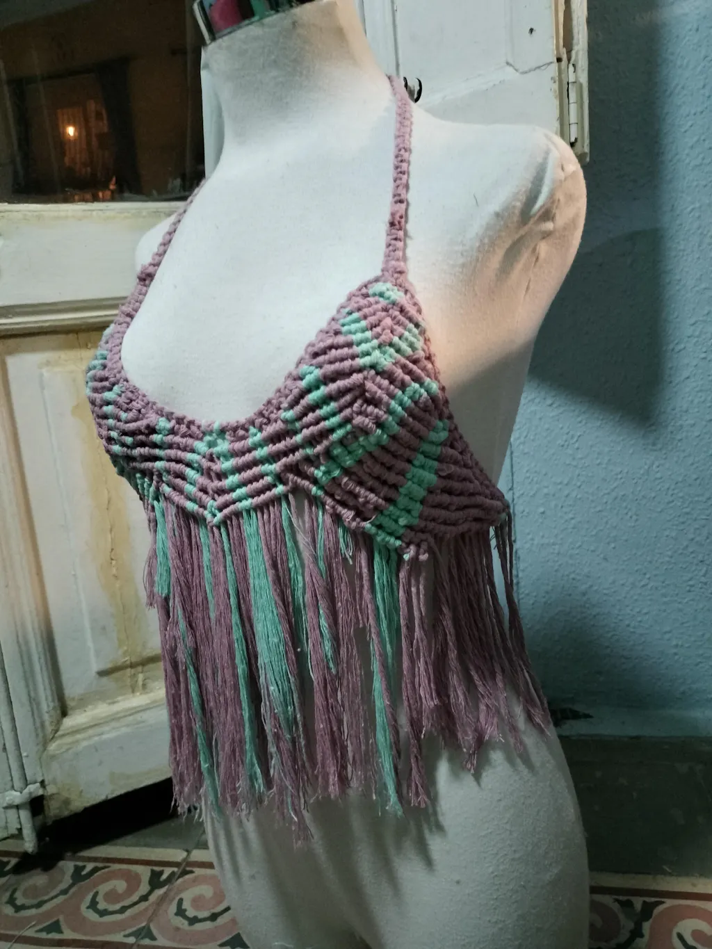 Combed cotton cord, also called warp. It is made by twisting cotton threads into a single strand. Thanks to this structure, the cord is especially soft, very easy to fray and comb, and lightweight. This type of cord is the most affordable, and consequently it is currently the most popular and widely used in the macramé world.