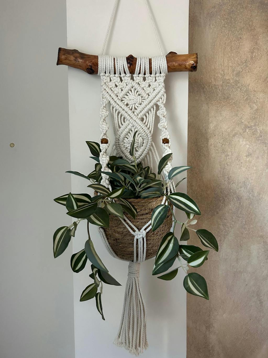 Cuerda torcida de algodón es la que habitualmente se denomina como "cuerda de macramé", ya que antiguamente era la única que se usaba para la técnica. Se produce torciendo tres hebras en una espiral. Gracias a esta estructura, se consigue una cuerda resistente y fuerte, y con un peso superior a otros tipos de cuerda. Es una cuerda fácil de manejar (la recomendamos para principiantes) y puedes desenrollar las hebras para conseguir flecos ondulados.